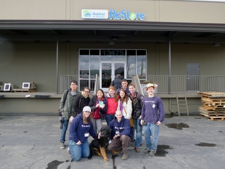 While in Portland through Habitat for Humanity’s Collegiate Challenge, we were able to participate in a variety of jobs and experience much of the city. On Tuesday, our seven student team worked with ReStore, a branch of Habitat for Humanity that receives donated house wares and materials and sells them to the public to raise money for Habitat builds. We also met with a Program Coordinator of Portland’s Ending Homelessness Initiative in her office downtown and were able to ask questions and learn more about the initiative and the 10-Year plan to end homeless. We resumed our normal schedule Wednesday and reported to Victoria Cottages, one of the build sites of Portland/Metro East’s HFH. It rained the entire day while we put up siding, put in drywall, filled electrical holes with insulation, and a variety of other tasks. After work, a member of JOIN, a homelessness organization, came to speak with us about their unique take to combatting homelessness. They believe in forming connections with the homeless to encourage them to move back into society and take the steps necessary to find and maintain housing, and they strive to be a friend rather than a government program. On Thursday, our team was assigned to prepare a donated Section 8 house for an AmeriCorps team who would be staying there. We cleaned the yard of leaves and trash and tore up urine-soaked carpet and padding to install new carpet. We returned to Victoria Cottages on Friday and left that evening. Thanks to the guidance of one of our native volunteers, we were able to visit Multnomah Falls, Voodoo Donuts, Powell’s Bookstore, coffee shops, thrift stores, and many other Portland sites. Overall we had a great trip building, sightseeing, and being educated on the issues of homelessness.